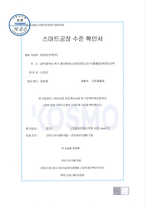 인증서 스마트공장 수준 확인서